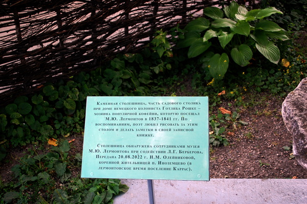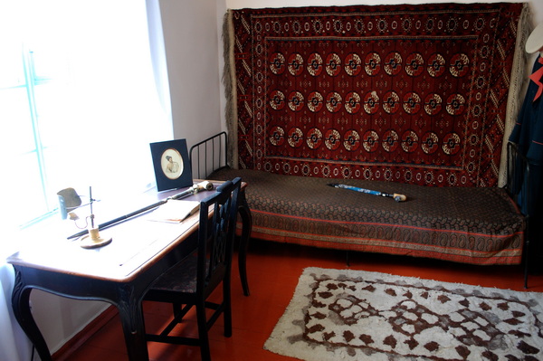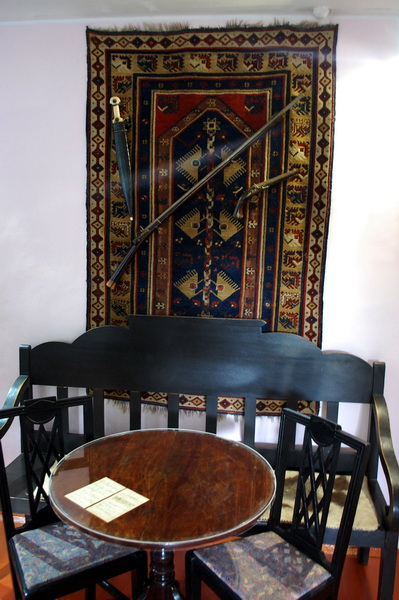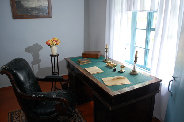 В домике, где вместе с Лермотовым проживал капитан А.А.Столыпин, несколько комнат. Лермонтов занимал маленькую комнату окном а сад. Стол и кресла – личные вещи поэта из его петербургской квартиры. За эти столом Лермонтов написал «Бородино», «Смерть поэта», «Маскарад» и другие произведения. Эти вещи сохранил троюродный брат Лермонтова А.П.Шан-Гирей, а его дочь передала их в дар музею.