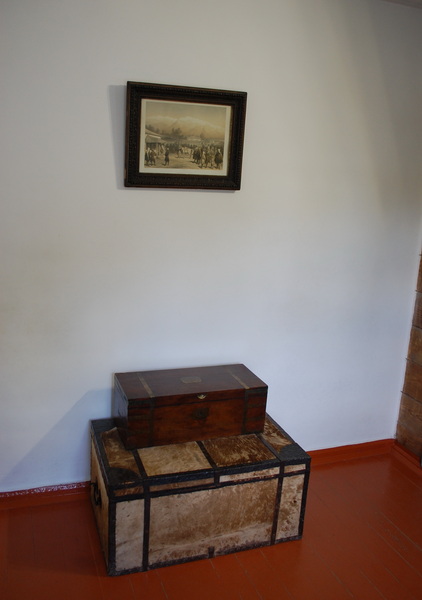 Дорожные сундуки - с такими ехал Лермонтов на Кавказ. На стенах Домика два акварельных рисунка, приписываемых Лермонтову.
