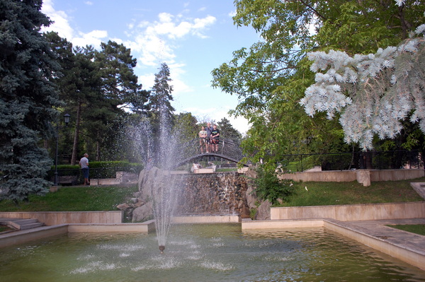 После лермонтовского музея мы немного погуляли по скверу. Было очень жарко. Мы освежились у каскадного фонтана.