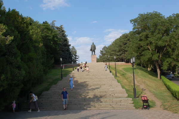 Еще один памятник – это памятник В.И.Ленину. Как утверждают пятигорские путеводители, это единственный сохранившийся в Пятигорске памятник "вождю мирового пролетариата". Памятник на гранитном постаменте сооружён в 1971 году. К нему ведет каскад ступеней. От подножия памятника открывается прекрасный вид на панораму города. Говорят, в хорошую погоду даже Эльбрус можно разглядеть.