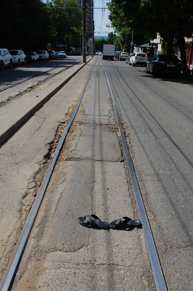 Олег решил, что трамвайная колея в Пятигорске гораздо уже колеи в Краснодаре. Рулетки с собой не было, вот таким нехитрым способом решил измерить. Оказалось, и правда – у'же. Вот какую информацию мы нашли на просторах интернета. В России существует три размера трамвайной колеи. Преобладающей колеей трамвайных систем большинства городов является отечественная в 1524 мм. Второй типаж – это метровая колея. Ее можно обнаружить в Калининграде – это наследие Кенигсберга, а также в Пятигорске и в некоторых городах союзных республик бывшего СССР.