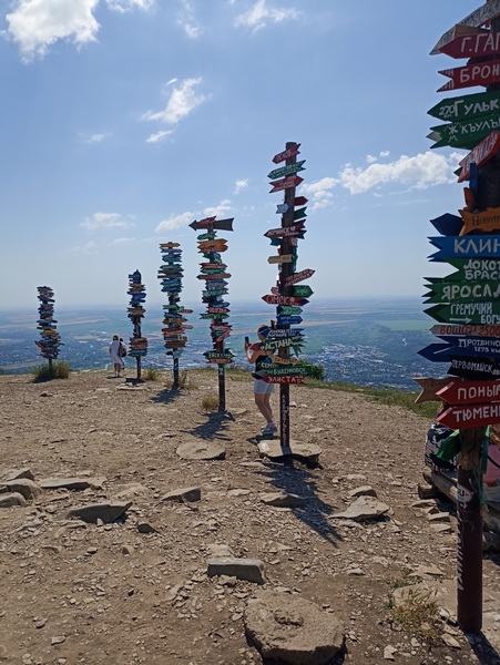 Главная достопримечательность Машука – указатели. Можно узнать расстояние до других городов России, конечно, если найдете название вашего города среди многочисленных столбиков с еще более многочисленными табличками.