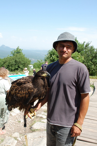 А также в разных местах, где мы побывали, и не только в Пятигорске фотографы предлагают сделать фото с орлом, живым, конечно.