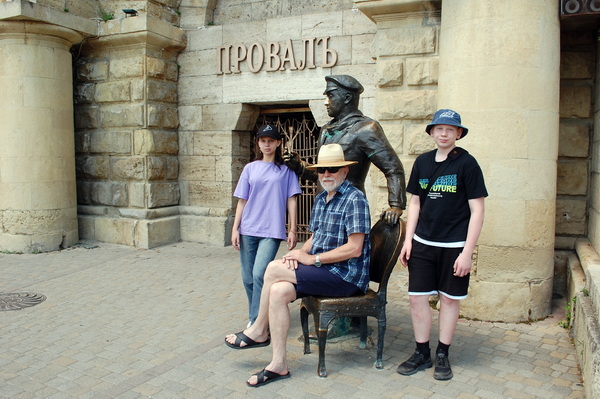 Замечательный персонаж произведения Ильфа и Петрова стоит рядом со входом к озеру «Провал» – это скульптура Остапа Бендера, установленная в сентябре 2008 года. Автор скульптуры Равиль Юсупов. Памятник герою «Двенадцати стульев» – Остапу Бендеру установлен в 2008 г. Поклонники романа «Двенадцать стульев» Ильфа и Петрова помнят, что часть действия книги происходит в Пятигорске. Остап хвастался, что знает 400 сравнительно честных способа отъёма денег у населения. «Великий комбинатор» решил продавать билеты для посещения Провала «с целью капитального ремонта, чтобы не сильно проваливался», хотя раньше туда все желающие попадали бесплатно. Рядом со скульптурой Остапа Бендера стоит один из стульев, на который садятся любители фотографий, чтобы сфотографироваться с «великим комбинатором».