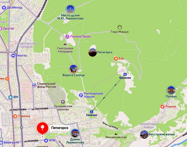 Здесь знаковые места Пятигорска.