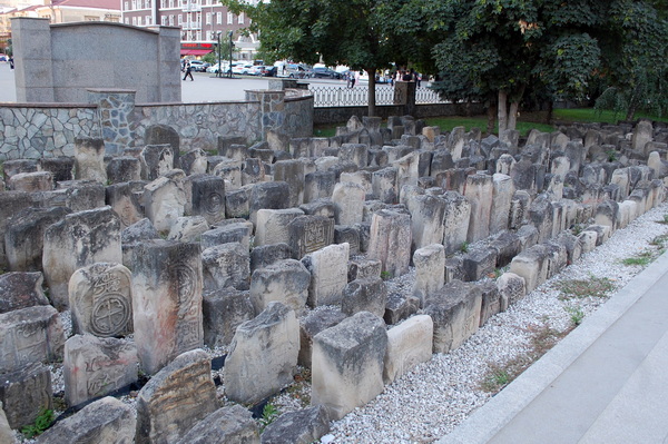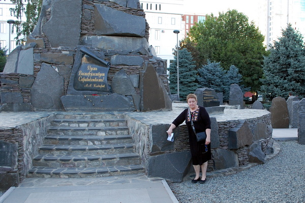 Вокруг монумента расположены старинные надгробные камни с чеченских и ингушских кладбищ.