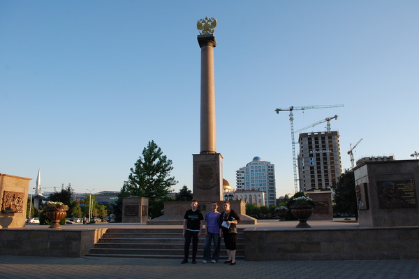 Стела «Город воинской Славы» В 2015 году в честь 70-летия Победы Грозный в числе пяти городов России был удостоен звания Города воинской Славы. Это символизирует признание мужества и стойкости его жителей в сложные периоды истории. В этом же году на центральной площади перед зданием мэрии установлена стела «Город воинской Славы». 13-метровая колонна на постаменте из розового гранита увенчана гербом России – позолоченным двуглавым орлом. Это не одинокая колонна, а целый архитектурный комплекс. По сторонам от стелы плиты с президентским указом, а по углам возведены пилоны с бронзовыми горельефами, которые рассказывают о славе, величии и могуществе народа Чечни: план Грозного 1818 года, русско-турецкие войны, Первая мировая война, Великая Отечественная война, пожарные, погибшие при налетах фашисткой авиации. Грозный был прифронтовым городом, и внес значительный вклад в Победу над фашисткой Германией в Великой Отечественной войне. Стела установлена в память всех погибших, которые отдали жизни ради защиты Родины.