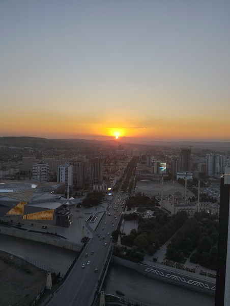 Со смотровой площадки открывается панорамный вид. Однако фотографировать можно не всё: северо-западная сторона площадки огорожена, туда нельзя направлять камеру, так как там находится резиденция главы Чеченской республики.