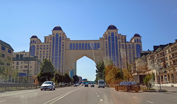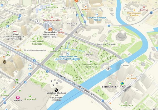 При пересечении реки Сунжа проспект В.В.Путина плавно переходит в проспект А.А.Кадырова.