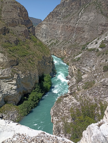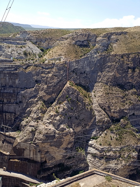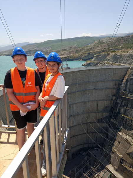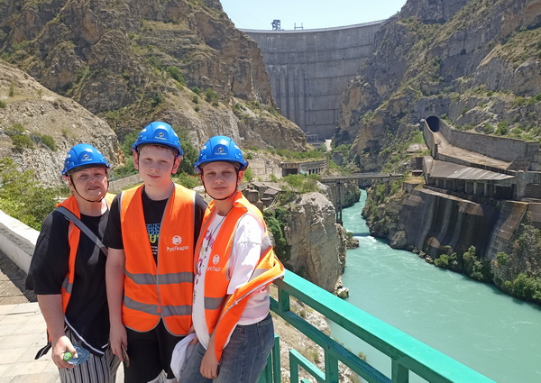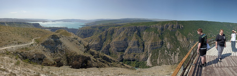 Экскурсия начинается с самой высокой точки Чиркейской ГЭС – на ее верхнем бьефе. Захватывающие пейзажи, открывающиеся со смотровой площадки, напоминают фьорды Норвегии. Перейдя по узкой дороге на левый берег ущелья, посетители встречают самый настоящий «вход в бездну» – гигантский аварийный водосброс тоннельного типа. Затем гости спускаются вниз. С нижней смотровой площадки масштабность гидросооружения чувствуется особенно. Здесь же, у нижнего бьефа, находятся здание ГЭС приплотинного типа и машинный зал. Ранее он был закрыт для всех, кроме сотрудников предприятия. Арочная плотина – самая большая в России. Масштабнее только Саяно-Шушенская ГЭС, но там плотина имеет иную – не арочную – конструкцию. Плотина Чиркейской ГЭС дважды изогнута – по вертикали и по горизонтали. Ее длина по гребню – 338 м, а наивысшая точка – 232,5 м (входит в топ-30 самых высоких плотин планеты). Толщина сооружения меняется от 30 метров у подножия до 6 метров у гребня. Находясь на вершине, создаётся ощущение, что стоишь на тонкой тропинке: с одной стороны тонны воды, с другой – пропасть в 232 метра