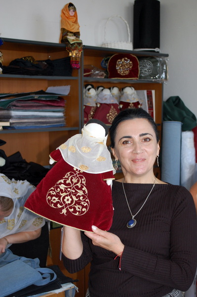 Руководит цехом Фатима Кишова, которая 10 лет занимается вышивкой. А еще Фатима – хранительница кубачинской башни.