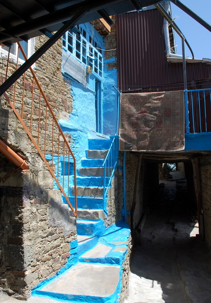 Ярко-голубые детали – этот цвет называют «кубачинским синим», им часто украшают жилища.