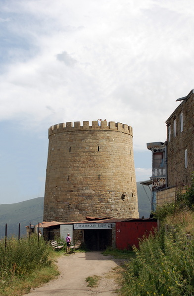 Визитная карточка селения – круглая средневековая сторожевая башня Акайла кала (XIII-XIV веков). Она венчает пирамиду старинных жилых построек, взбирающихся друг за другом на крутой склон горы. Сооружение высотой около 20 метров построено из отесанного камня. Изначально в башне было 7 этажей, в том числе два подземных. Здесь несли караульную службу молодые воины – батирте. С верхней площадки открывается захватывающий вид на Кубачи и окрестные горы, хорошо видна старая часть села, если, конечно, стоит ясная погода, потому что Кубачи славятся своими густыми туманами.